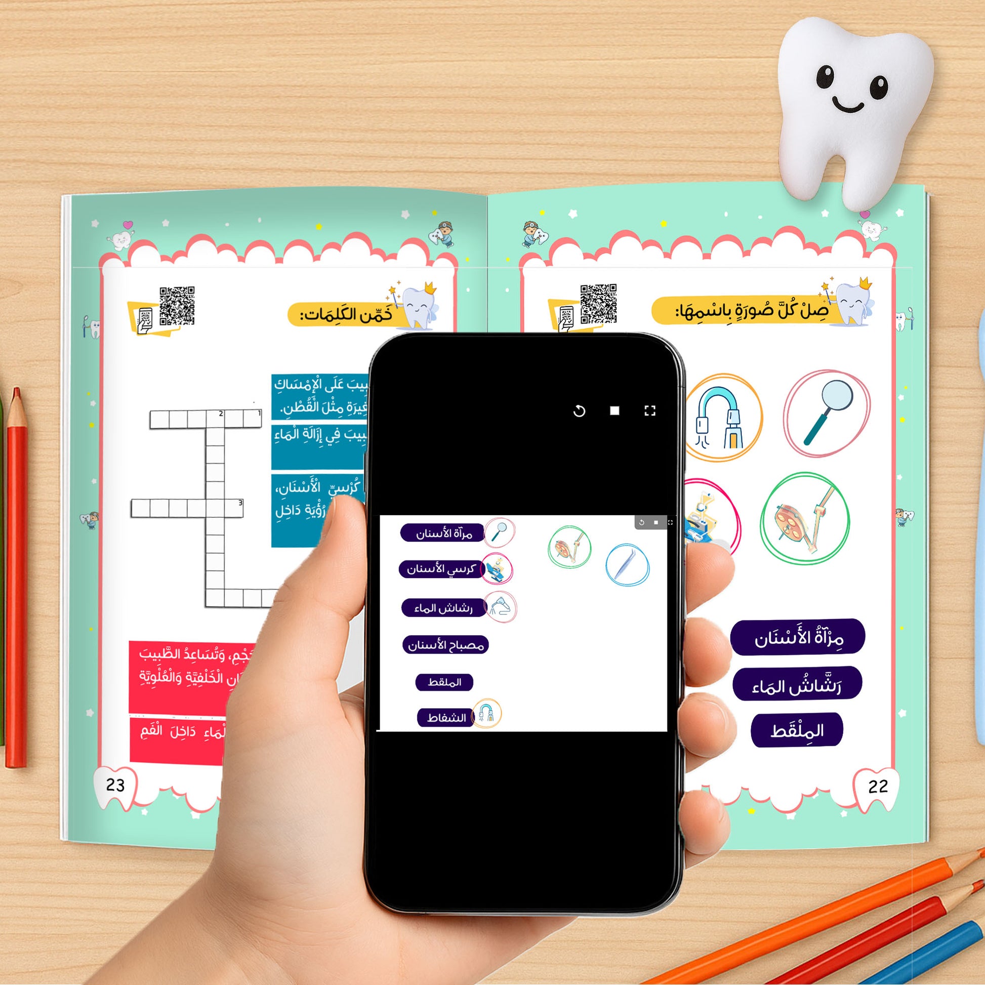Perfect for children aged 4 to 8, this full set includes 3 premium-color educational books and 3 interactive activity books, creating a playful yet informative journey through the world of teeth.